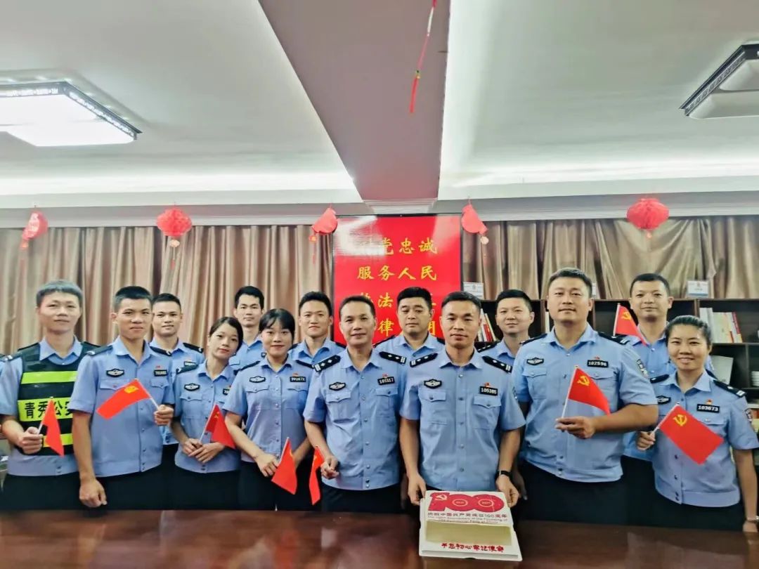 新城派出所全体民警、增援学警共同庆贺中国共产党成立一百周年。