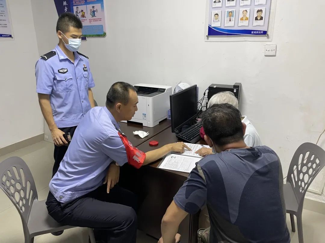 星湖派出所增援学警覃朝明协助调解群众纠纷。