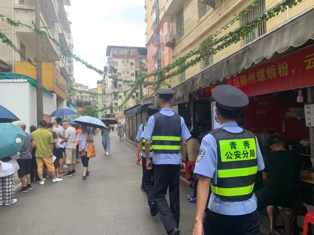 滨湖派出所增援学警廖世辉、庞智鑫在值班当天听从带队领导安排前往南宁市沛鸿民族中学开展巡逻执勤工作,确保考生中考顺利进行。