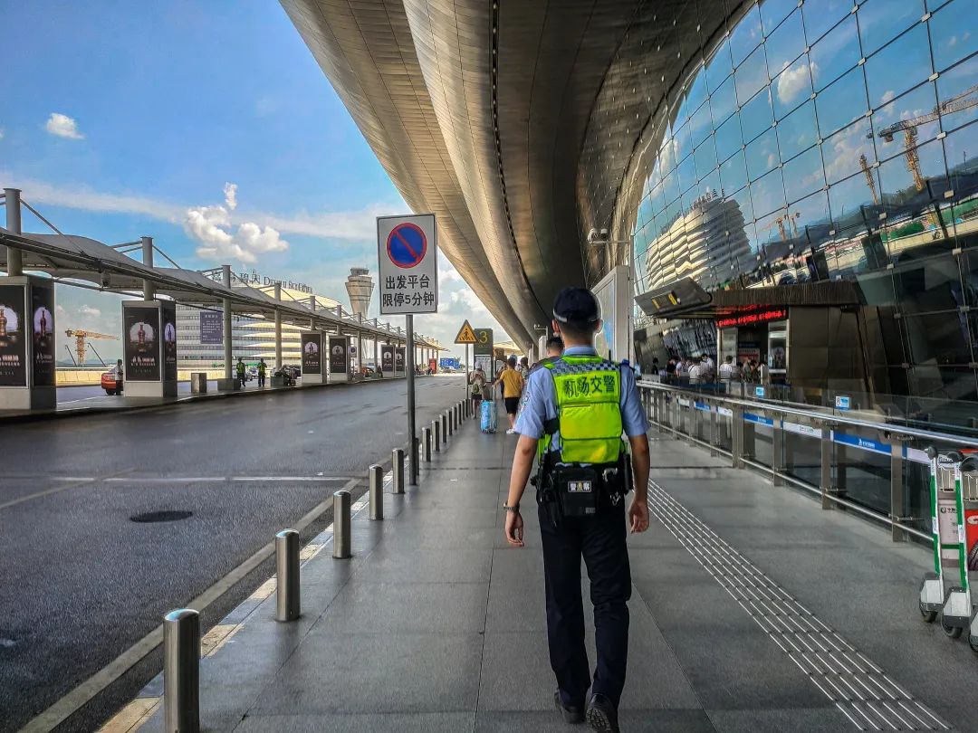 人海如潮、车轮滚滚。交巡警支队的实习生们穿插在这车海人山中,不断锤炼自己。18公管的黄天成、庞宇浩、孟婷、韦子雄在交巡警支队实习期间,参与了机场多警种联合查缉,航站楼常态化巡逻,处置交通事故和违法案件、优化空港交通标志标线,交通设施检护,T2航站楼勤务指挥,警务安全保卫交通管制等多项警务工作。