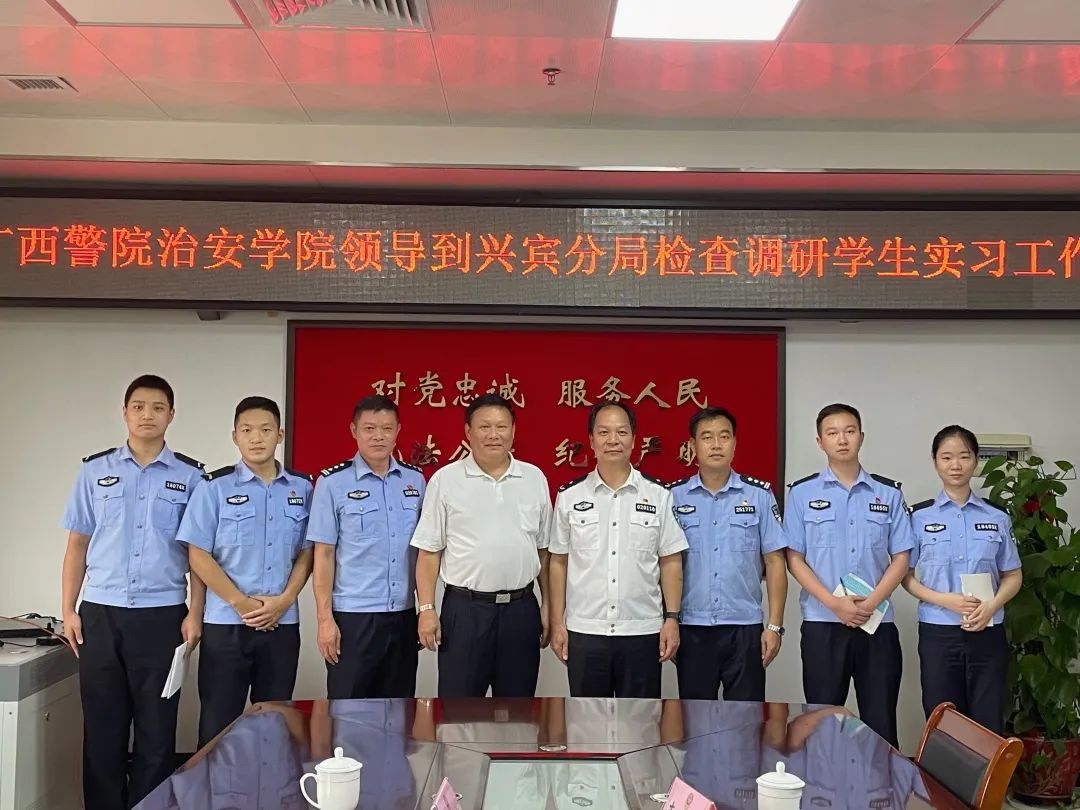 2021年8月17日,治安学院院长覃泽敏、党总支副书记陈垠安、2018级辅导员黄宏春一行,到来宾市公安局对我院实习生实习情况进行检查调研。