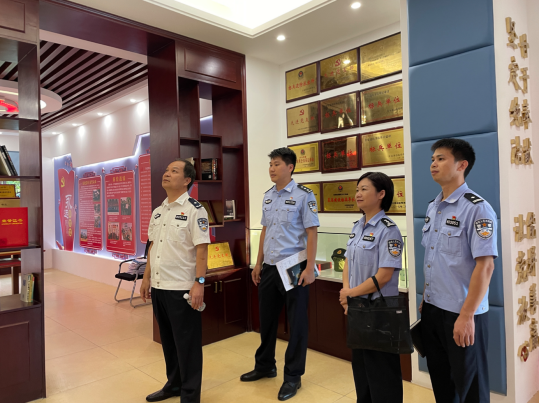 覃泽敏院长一行到北海市公安局海城分局,实地参观了高德、海东两个派出所,并对派出所实习生日常工作内容、日常生活安排和内务卫生情况进行了解,并给出具体建议和期望。