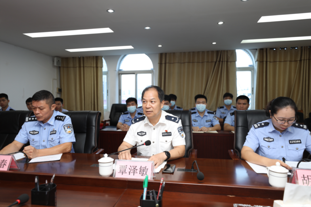 随后,在海城分局会议室展开了座谈会。座谈会上,覃泽敏院长一行向局领导和实习生表达了热情的问候,并详细了解治安学院北海实习点三十五名实习生的实习工作情况,热切关心实习生们的食宿情况,并给予了一些切实建议。