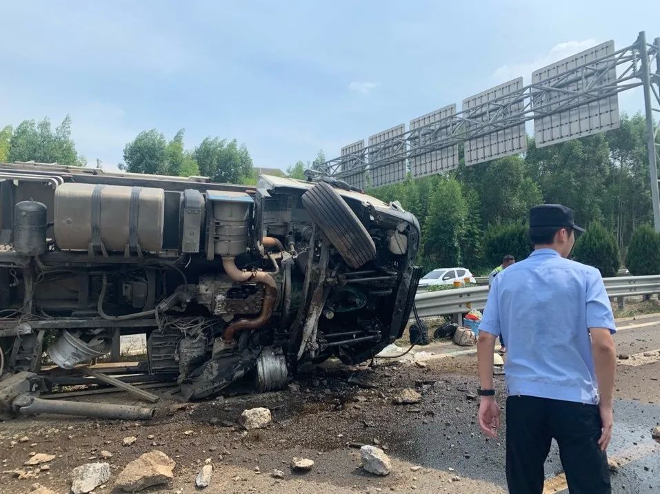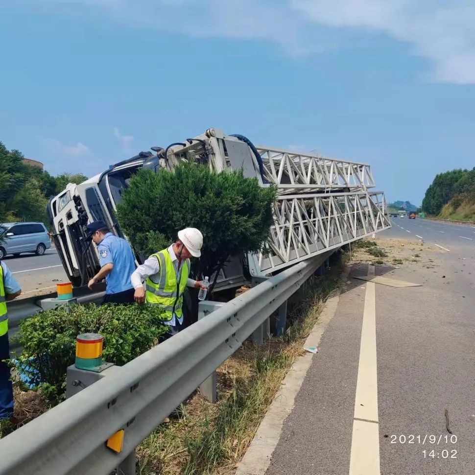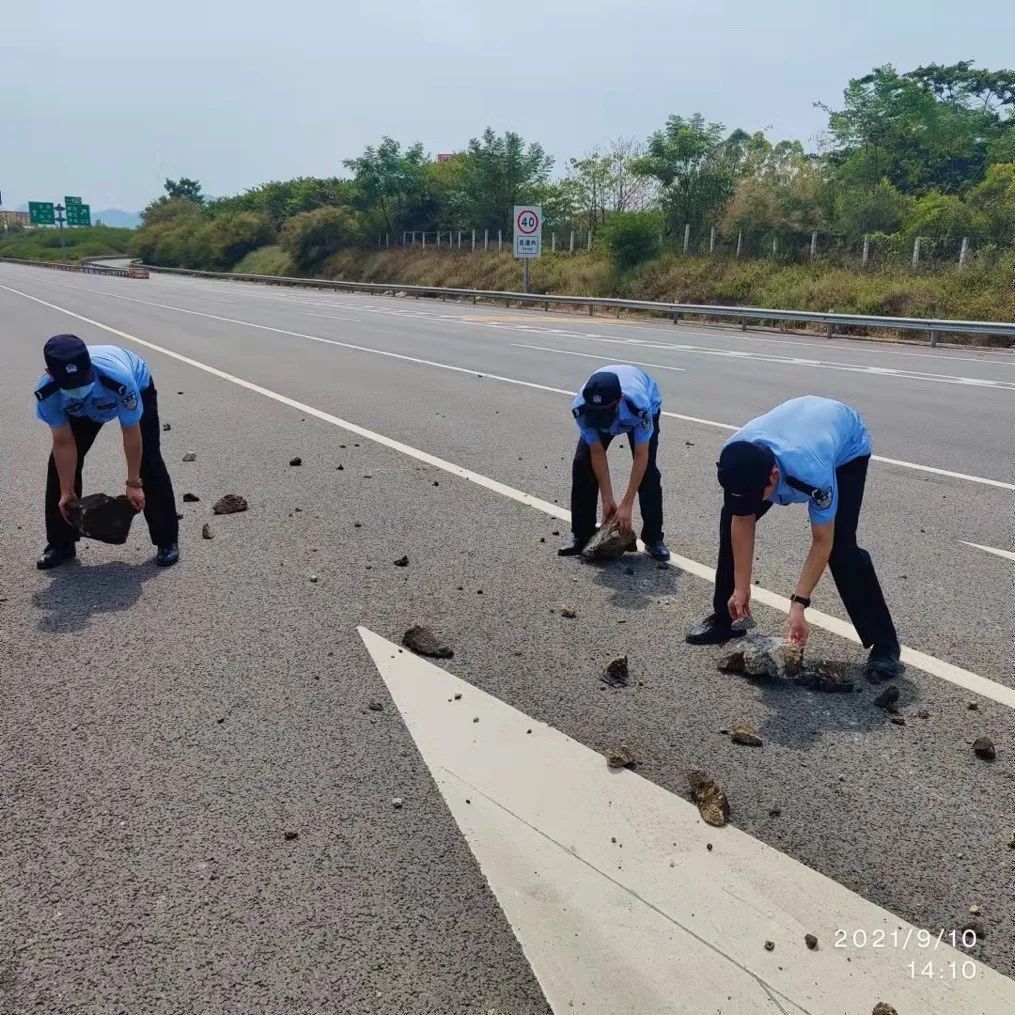 2021年9月10日,在从柳州东高速入口开车前往泉南高速公路新兴服务区治安卡点的路途中,前方一辆大型工程作业车辆因路面气温过热导致轮胎爆炸,一头扎向公路中央隔离防撞钢梁,侧翻后仍滑行数十米,巨大的冲击力导致车辆零部件、公路地基飞溅至高速公路往返共五条车道,对通行车辆造成巨大危险。事故十分严重,实习生陈泓廷、罗钰淇立即配合民警对现场进行救援处置工作。