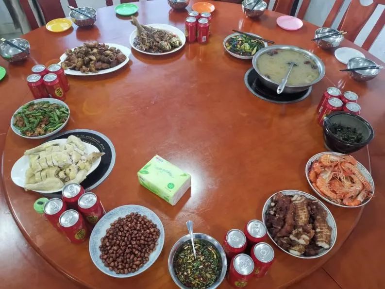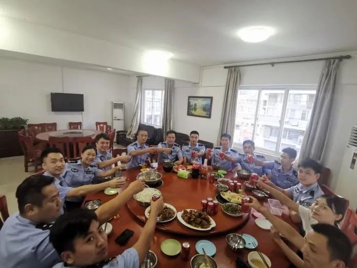 2021年09月21日,正值中秋佳节,柳东派出所特意在所里准备了丰盛的大餐,以此庆祝中秋佳节并慰劳所内值班民警、辅警、实习生,并邀请了谭中所的实习生一起聚餐,让我们暂时忘记繁忙的日常于此同聚一堂,共言这不易的平安背后付出的汗水。