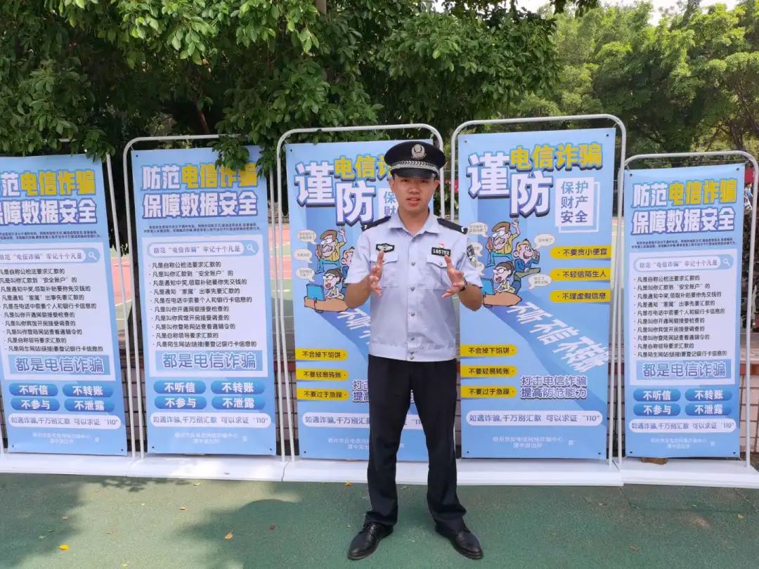 在宣传活动中,实习警詹期翔、练永俊同潭中派出所的民警一同向同学们发放反电信网络诈骗的宣传图册,讲解了电信网络诈骗的相关知识、列举了在学校中常见的几种电信电信诈骗的手段,对学生们详细介绍了每种诈骗手段应当采取的防范方法,并指导学生们下载安装和使用国家反诈中心APP,通过技术手段增强学生们对电信网络诈骗的防范能力。