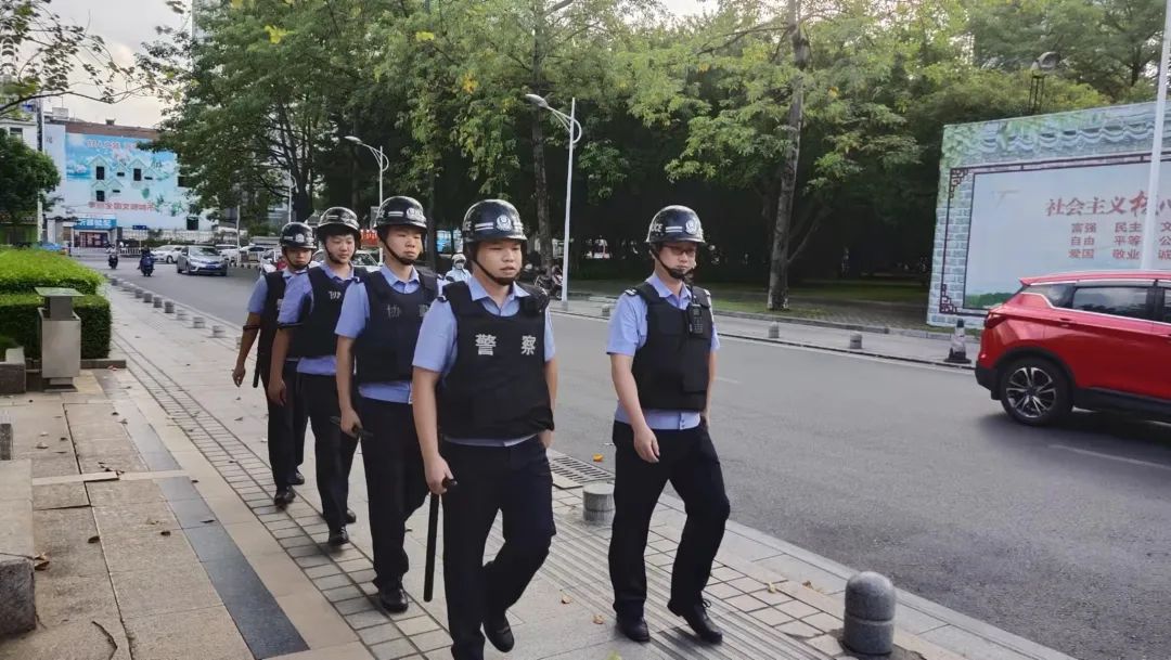 10月6日,中南派出所包东民、姚景山、李华德、黄俊淞四名实习警跟随民警在辖区内进行武装巡逻。