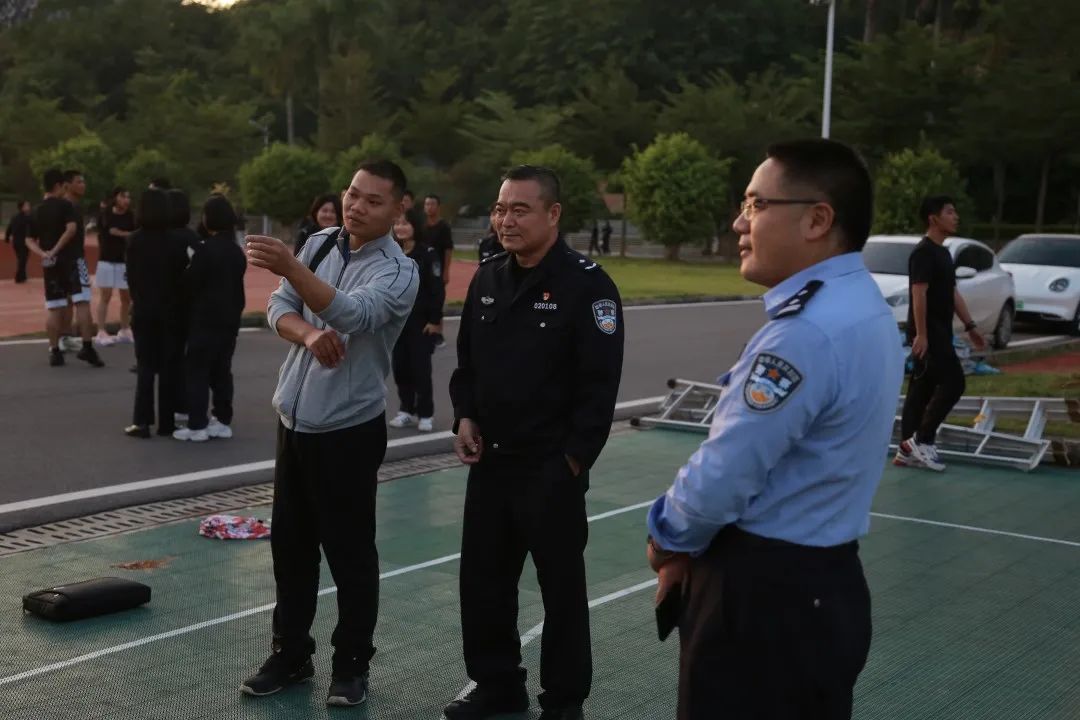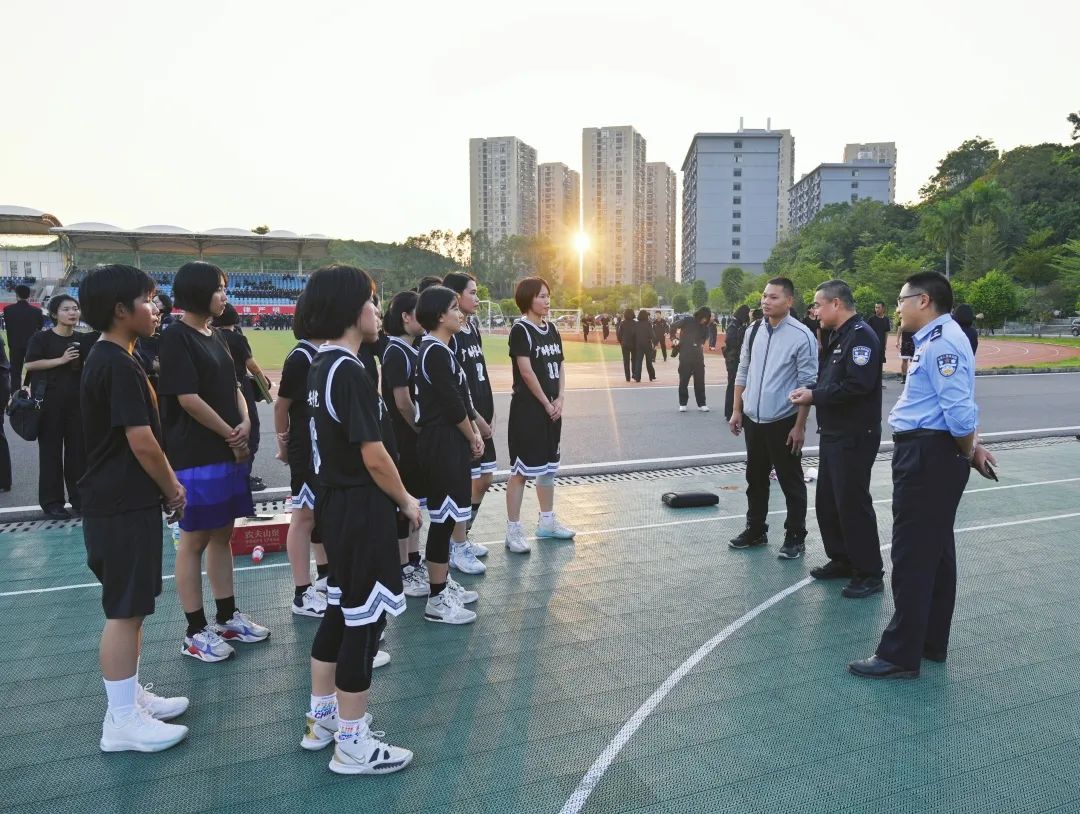 在今天的比赛中,治安学院党总支书记李林青,学生党支部书记、团委书记邓新华,2019级辅导员何伟到场观赛,为治安健儿加油助威。