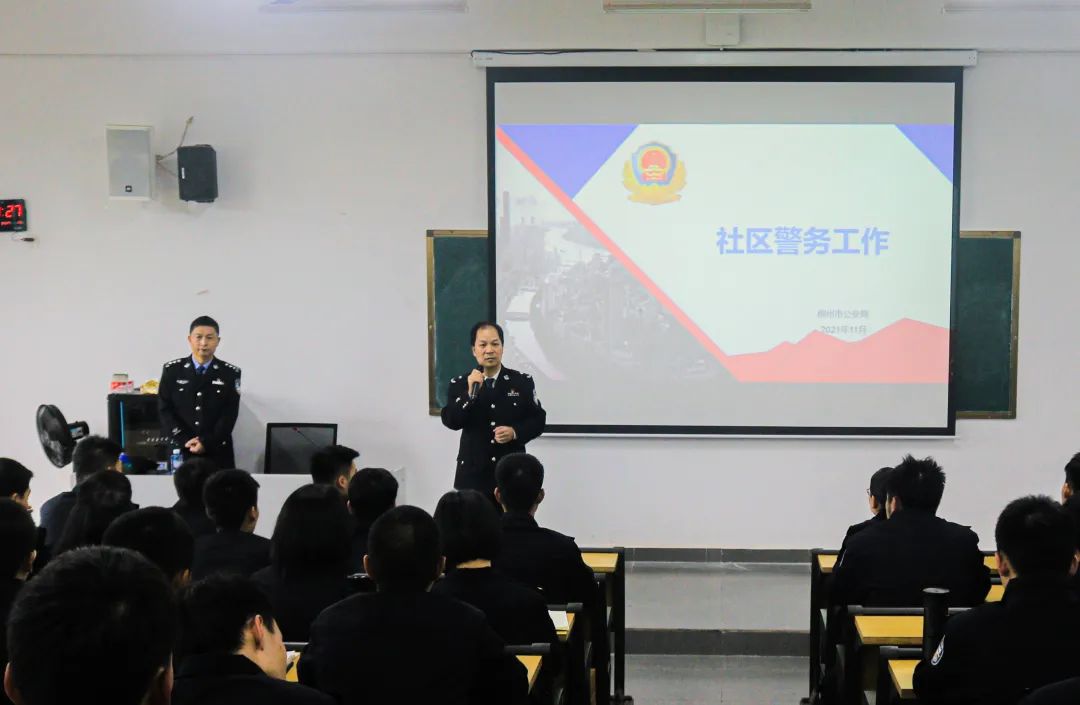 为提升治安学专业应用型实战型人才培养能力,提高学生的专业素养,增进对公安工作的了解,2021年11月2日下午,beat365唯一官方网站治安学院邀请柳州市公安局的民警任红旗为我院2019级、2020级的同学进行一场以社区警务为主题的专题讲座,我院教师到场聆听。