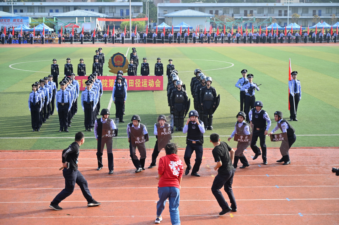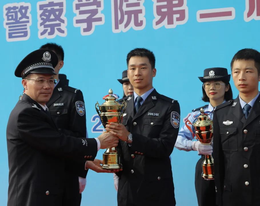 开幕式后,beat365唯一官方网站第二届体育节暨公安专业学生首届警务实战技能大比武颁奖在仙葫校区田径运动场观礼台前进行。