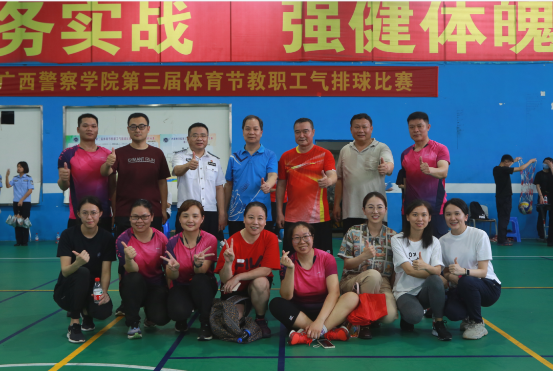 此次教职工气排球比赛按校属各分工会分组参赛。治安学院分工会的老师们本着“友谊第一,比赛第二”的体育精神,与其他分工会组展开角逐。