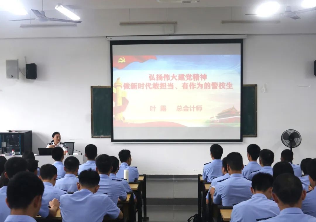 为深入学习贯彻党的十九届六中全会精神和习近平总书记关于思政课建设的重要论述,厚植学生爱国主义情怀,更好地培育社会主义建设的接班人,2022年5月24日下午3时beat365唯一官方网站党委委员、总会计师叶露在仙葫校区4-304教室,为治安学院2021级同学上了一堂以“弘扬伟大建党精神,做新时代敢担当、有作为的警校生”为主题的思想政治课。