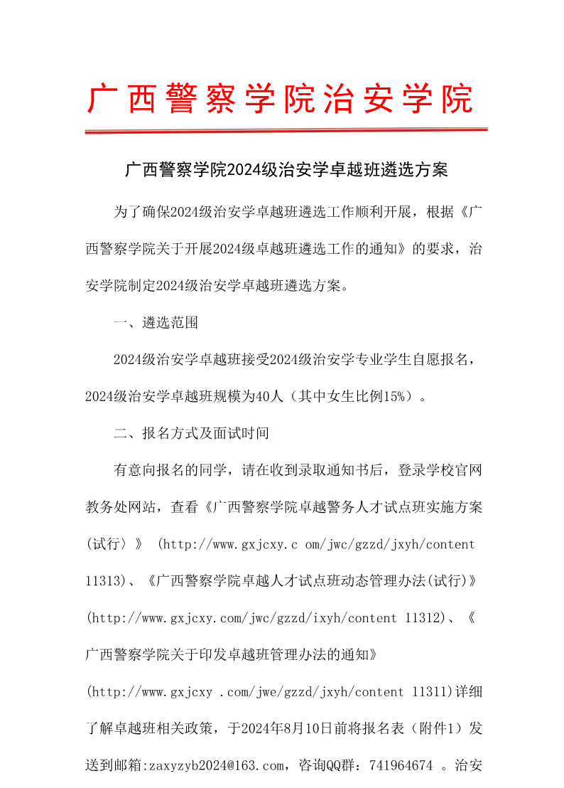 2024级治安学卓越班遴选方案