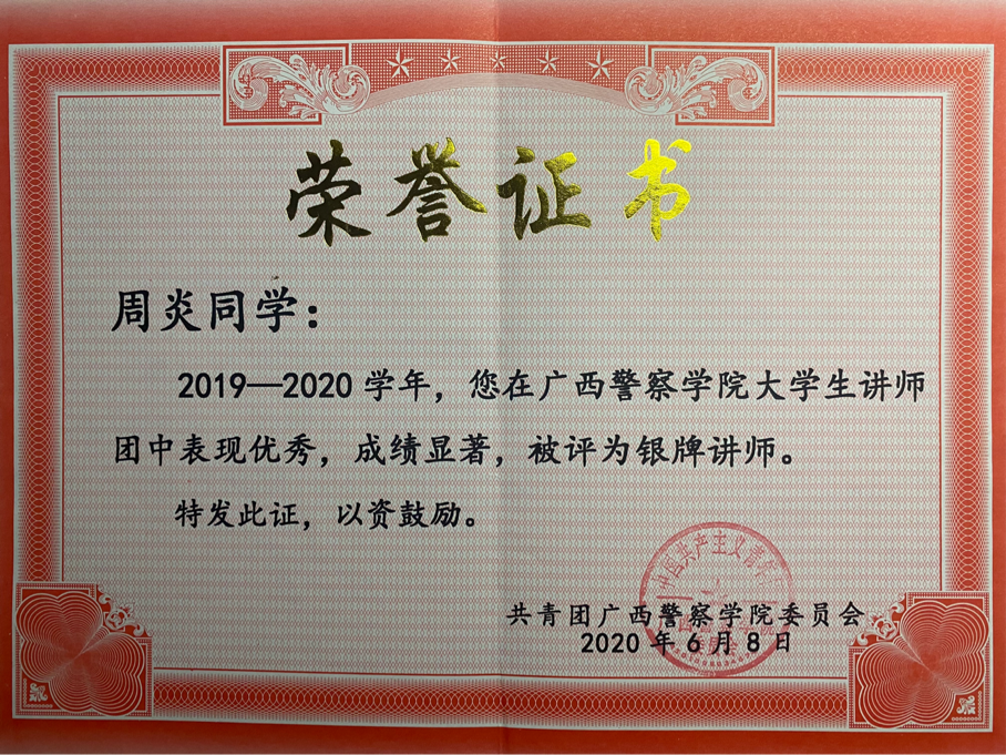 青年榜样|用青春追求极致 为学院增光添彩——记2018级公安管理学一区周炎 【不忘初心 砥砺前行】