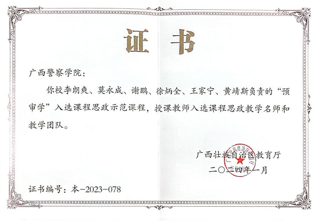 预审学教学团队入选广西壮族自治区级课程思政教学名师和教学团队