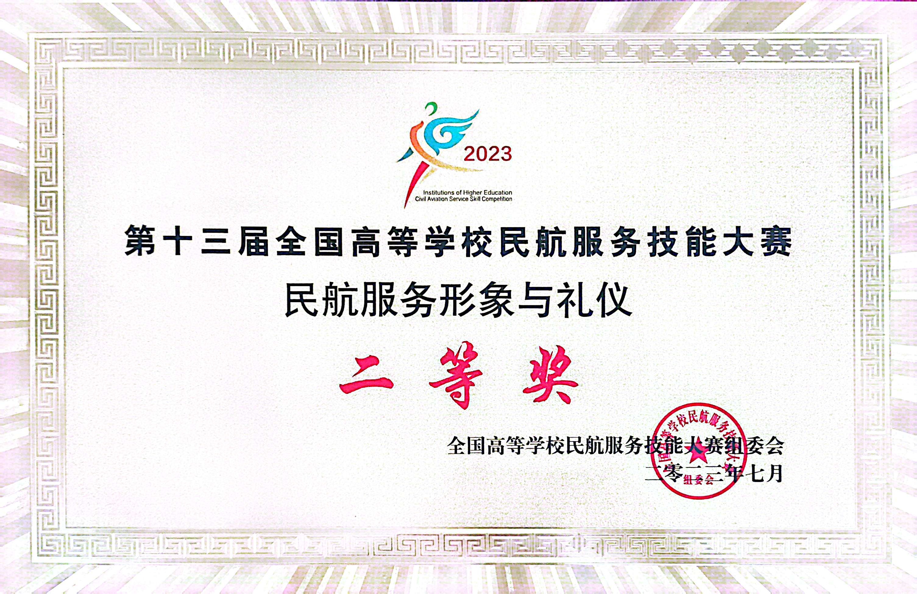 团队获第十三届全国高等学校民航服务技能大赛民航服务形象与礼仪二等奖
